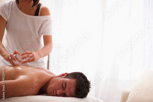 Man receiving cupping therapy on his back