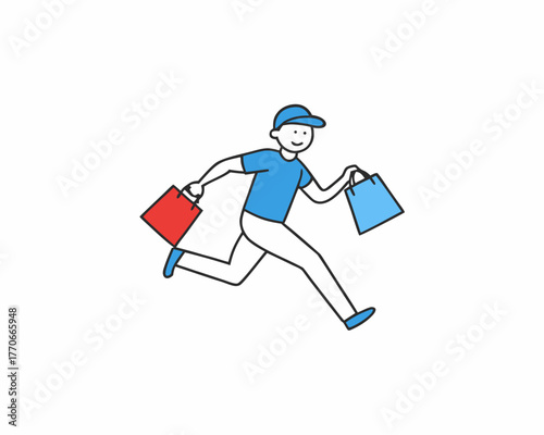 Man running with shopping bags vector illustration, isolated on white background