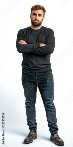 Man sad face background standing modern.