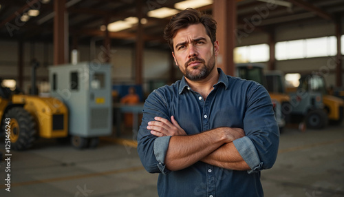 Man showing contempt while standing in industrial warehouse