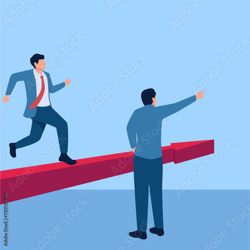 Man shows the way up to his team members, illustration for leadership.