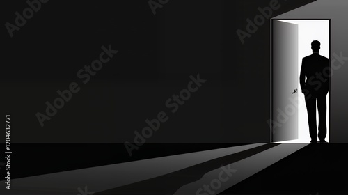 Man Silhouette at Threshold of Light and Shadow: A Journey into the Unknown