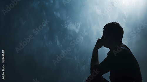 Man silhouette thinking about problem or trouble at work on gray studio wall Anonym concept : Generative AI