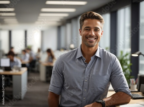 Man Sitting at Desk in Office, Workspace, Professional, Business, Technology, Communication. Generative AI.