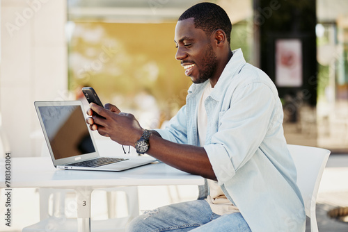 Man sitting black internet technology happy mobile male smartphone phone adult young lifestyle african