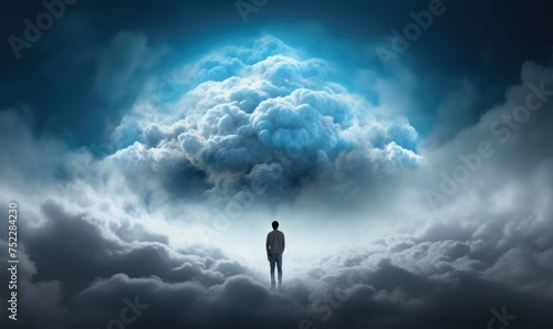 Man standing in front of a futuristic cloud connected to his mind.