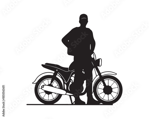 Man Standing Next to Motorcycle Silhouette Vector Illustration