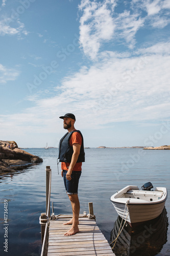 Man standing on jetty