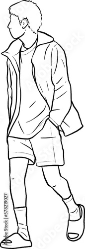 Man standing with his hands in his pants pocket line vector drawing. Minimalistic contour illustration.