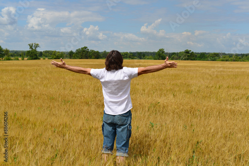 man stands on the rye field