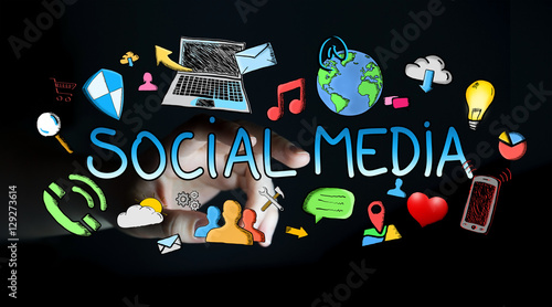 Man touching hand drawn social media presentation