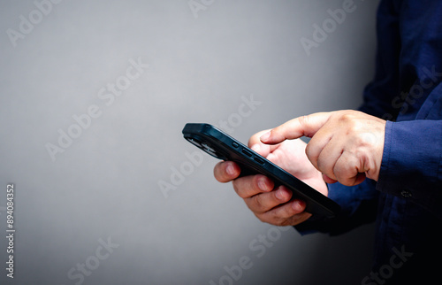 Man use smart phone to make the transaction for various activities. Shopping, finance, payment online, banking, money.