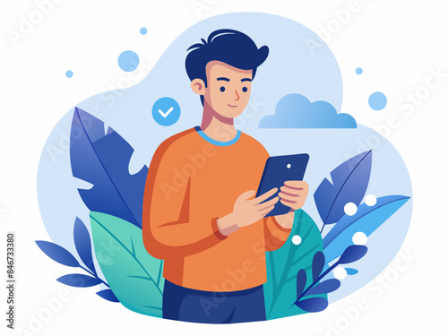Man using a smartphone with an abstract background, ideal for themes of technology and modern life.