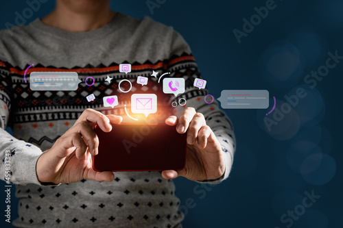 Man using smartphone to chat, post and message on social media. Smart communication technology and business marketing