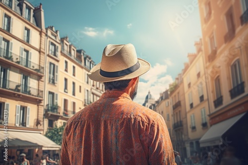 Man vacation sunny france. City french tourism european holiday. Generate Ai