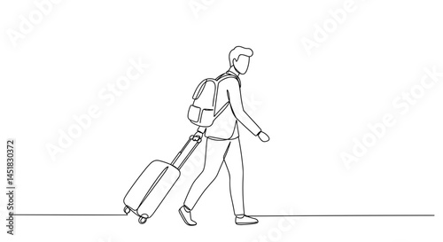 Man walking with suitcase in minimalist line art style