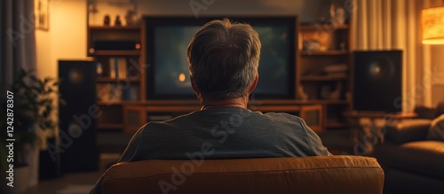 Man watching TV in home theater, evening