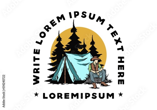 Man wearing a cowboy hat sitting in front of the tent illustration