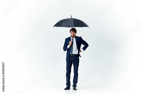 man wearing umbrella rain protection weather