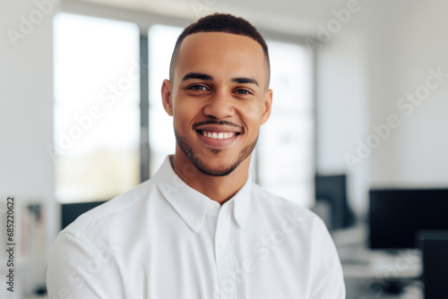 Man wearing white shirt with friendly smile looking directly at camera. Suitable for various uses.