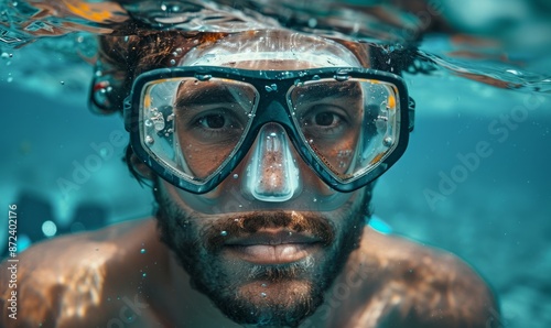 Man with a scuba diving mask, looking adventurous