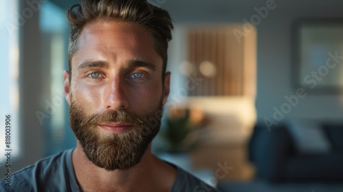 Man with beard in warm indoor lighting