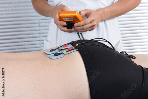 Man with electrostimulator electrodes on his Back