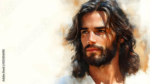 Man with Long Hair, Artistic Portrait, Painted, Handsome, Brown Eyes, Beard, Digital Art, Male Figure, Expression, Style, Visuals