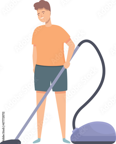 Man with vacuum cleaner icon cartoon vector. Cleaning roof equipment. Household cleaning chores.