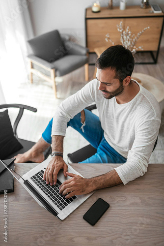 Man working on a laptop from home