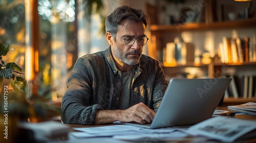 Man Working on Laptop at Home