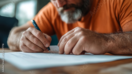 Man Writing Notes in a Cozy Indoor Space During the Afternoon
