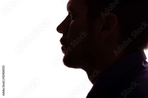 Man young unshaven businessman business clothes silhouette - white background isolate