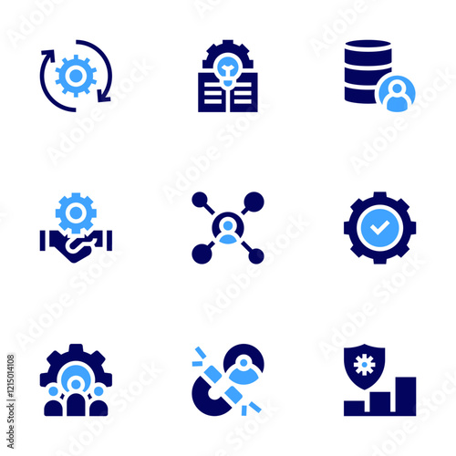 Manager icon set. Bold style. Duotone colors. exchange, compliance, social networks, idea, team, crm, risk management, magnet, database