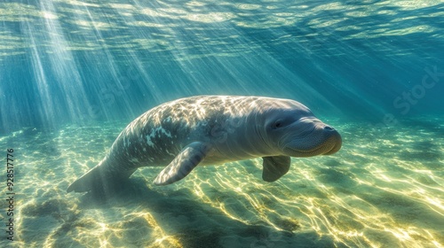 Manatee Swimming in Crystal Clear Water