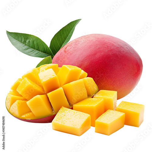 Mango fruit and half mango with leaf png