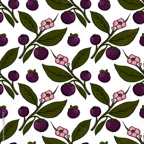 Mangosteen tropical fruit seamless pattern. Fresh organic food. Vector illustration with sketch.