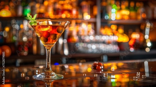 Manhattan cocktail on bar background. Glass of alcoholic drink