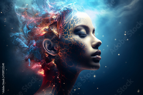 Mankind exploring the space using astronaut protective suit Generative AI closeup futurism