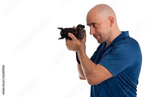 Mann hält Kamera in der Hand, bereit zum fotografieren