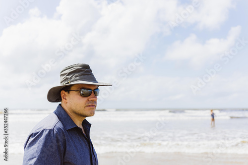 Mann mit Hut am Strand in Urlaub Kenia, Afrika