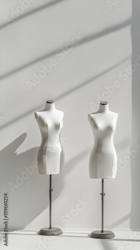 Mannequins displayed in a well lit studio showcasing fashion design concepts