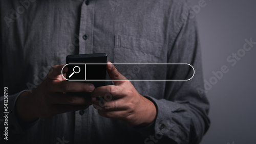 man's hands are using a smartphone to Searching for information. Using Search Console with your website. Data Search Technology Search Engine Optimization. Online business search a job for work