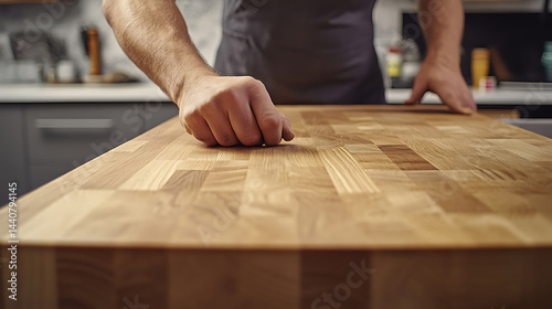 Man's Hands on a Wooden Cutting Board in a Kitchen