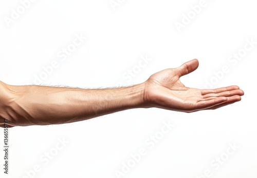 Man's outstretched hand against white background