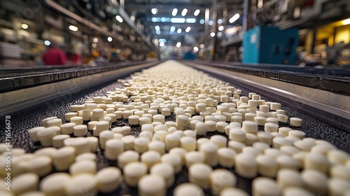 Manufacturing process of pharmaceutical tablets on conveyor belt
