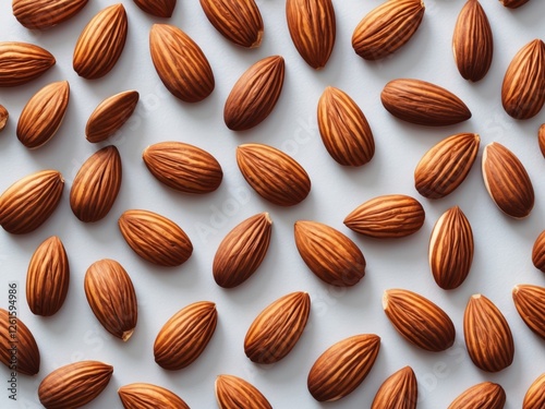Many Almonds on White Background