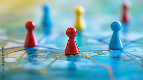Many colored pins on a board. Business alliances and collaborative environments. Cooperation between teams in the development of networks. Numerous colored pins lifestyle on a board.