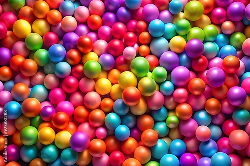 Many colorful big and small random spheres huge pile of colorful matte soft balls in different size