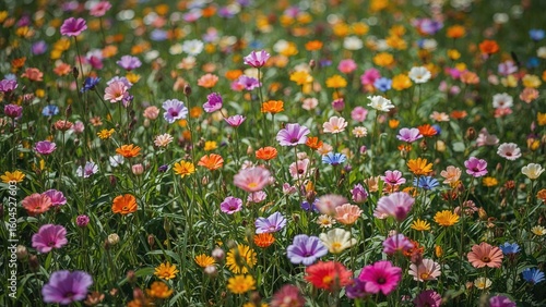 Many Colorful Blooms Dotting a Green Pasture